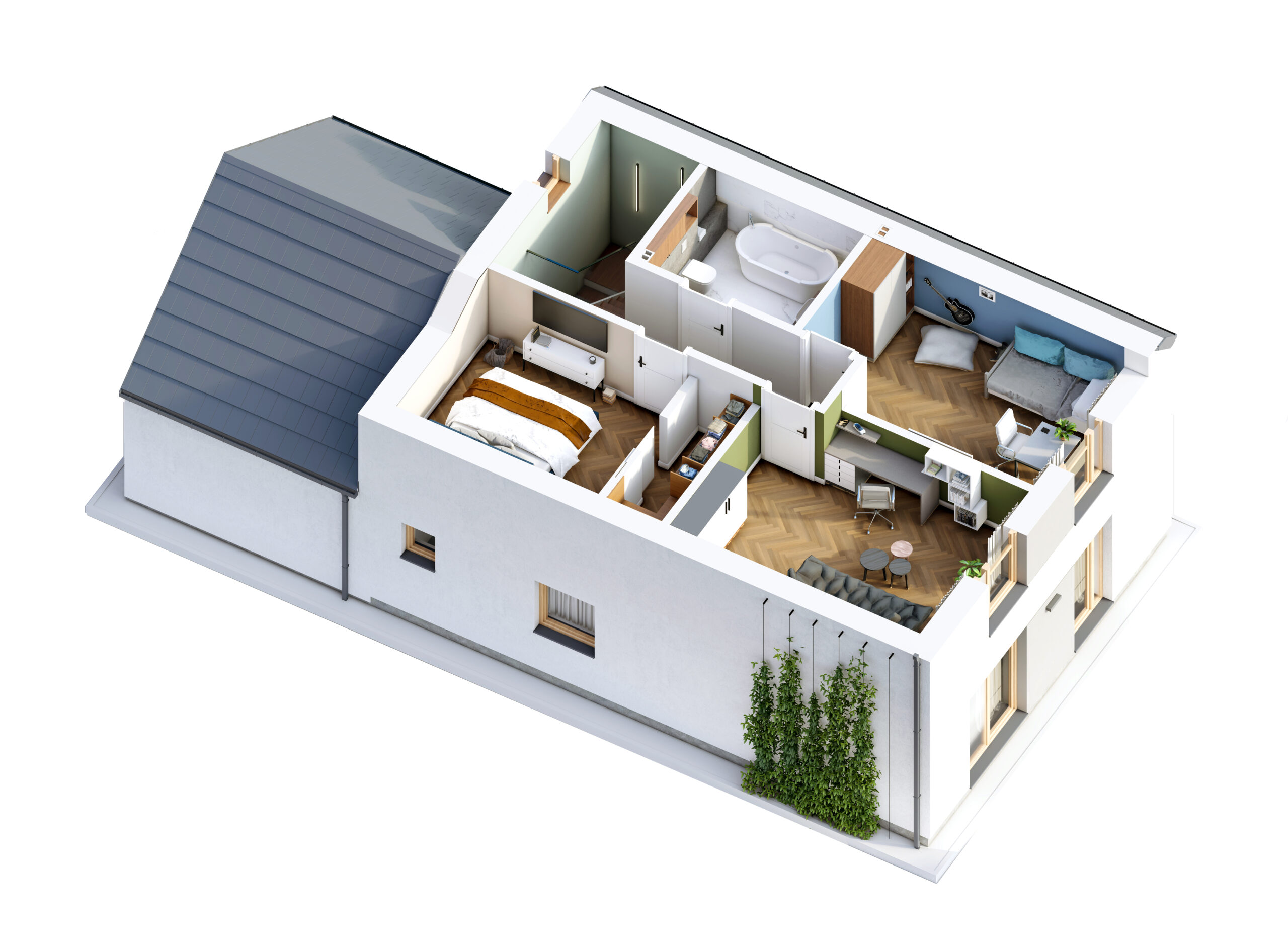 Dzięki współpracy z renomowaną firmą Deco Room zapewniamy profesjonalne i estetyczne wykończenie domu – specjaliści zaproponują pakiety wykończeniowe do wyboru, a następnie zajmą się realizacją wnętrz, oszczędzając Twój czas.