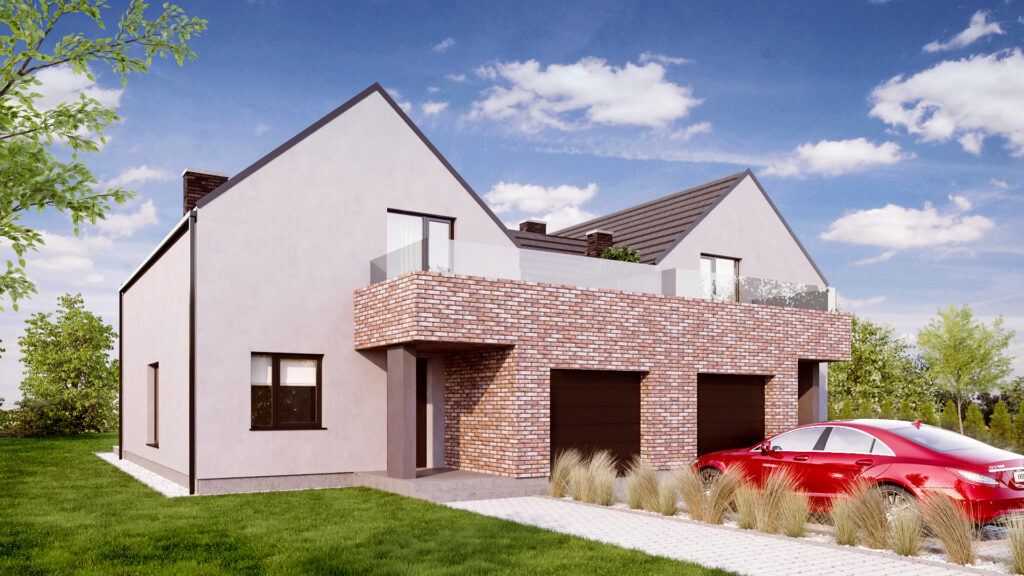 Twój nowy dom zapewni Ci komfort i swobodę użytkowania całej dostępnej przestrzeni. We wnętrzach znajdziesz m.in. przestronny salon z otwarta kuchnią i jadalnią, 2 łazienki, 4 sypialnie (w tym jedna z garderobą), wiatrołap i pomieszczenie gospodarcze. Na początkowym etapie budowy istnieje możliwość dowolnej aranżacji ścianek działowych – zmienimy dla Ciebie układ pomieszczeń. Do Twojej dyspozycji jest również użytkowe poddasze.